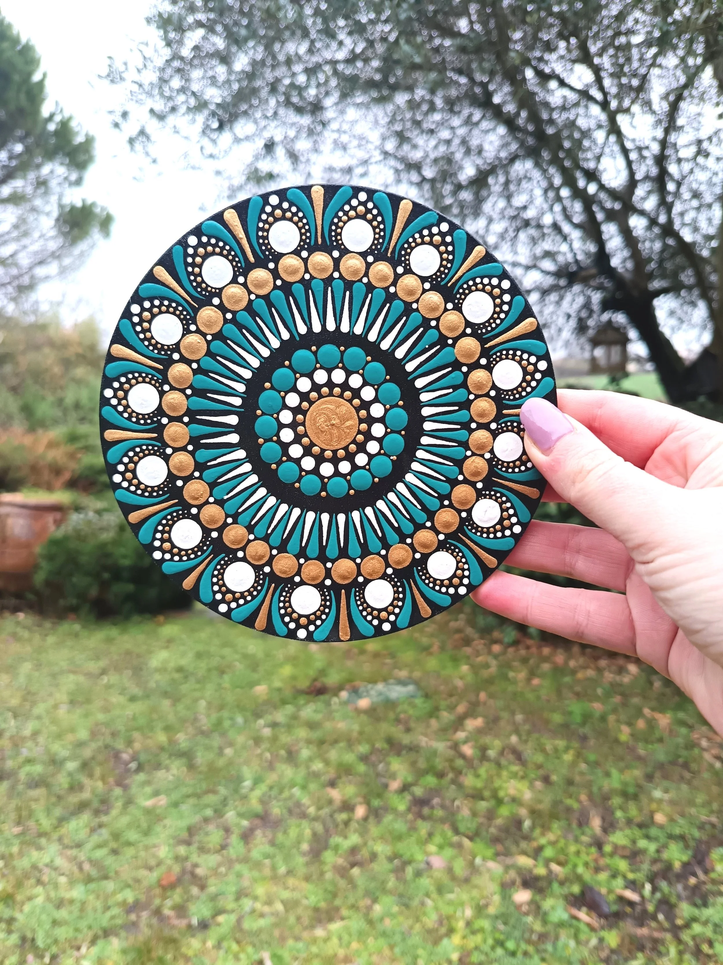 J’ai commencé à peindre des mandalas parce que j’avais besoin d’un refuge. D’un espace où mon mental pouvait se poser, où mon corps pouvait souffler. Aujourd’hui, c’est exactement cet espace que je souhaite t’offrir.